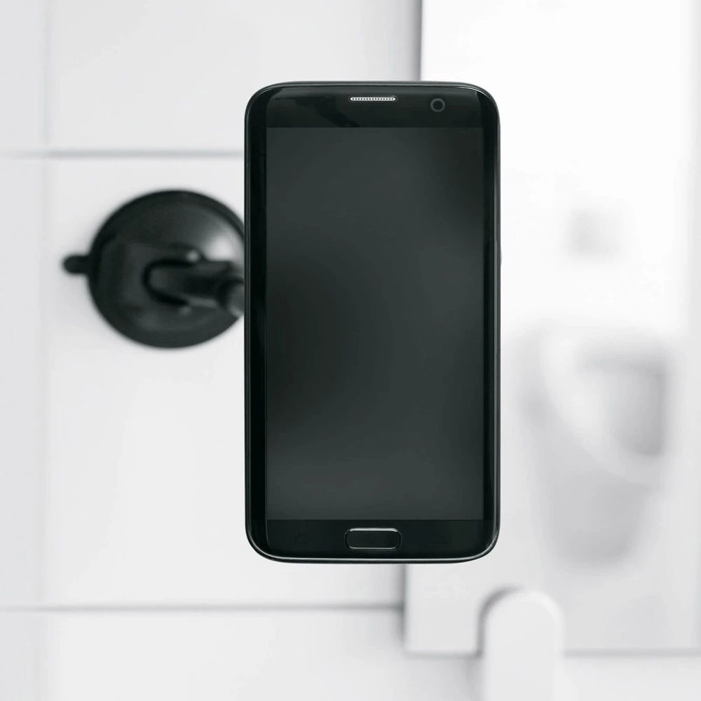 La ventouse en silicone avec mécanisme de levier à vide garantit une fixation fiable sur toutes les surfaces lisses comme le carrelage, le pare-brise ou le verre. Il est recommandé de nettoyer la surface au préalable. Grâce à la fixation à baïonnette éprouvée de COMPIT, le smartphone peut être fixé au support et retiré en un tour de main. Pour cela, une coque COMPIT spéciale est nécessaire.