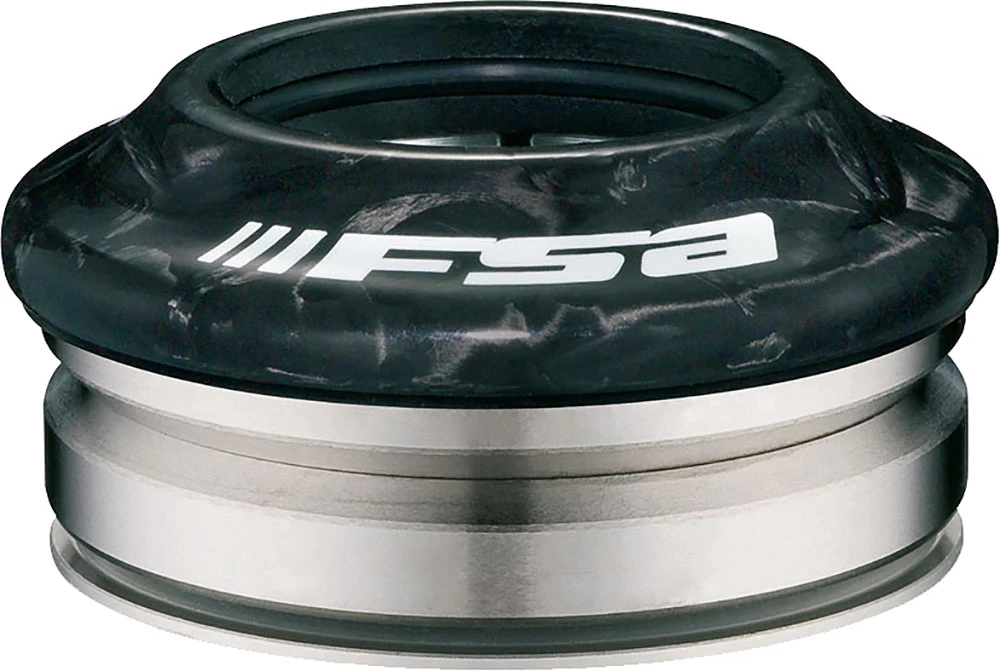 Le NO. 53 est un jeu de direction entièrement intégré (IS) de FSA pour les tés de fourche coniques d’un diamètre de 1 1/8″ (en haut) et de 1 1/4″ (en bas). Le jeu de direction comprend un capuchon en carbone.