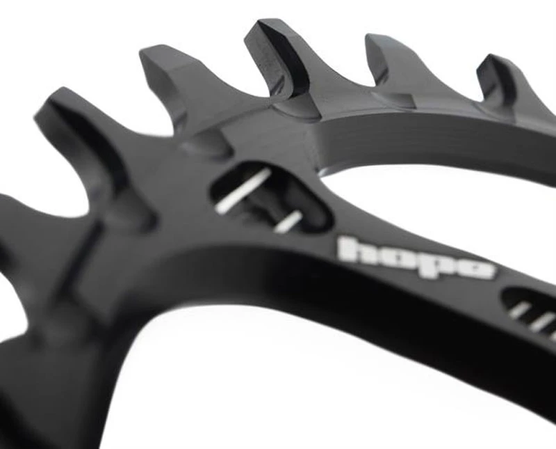 Plateau Direct Mount Boost de Hope fraisé CNC avec un nouveau profil de dents Narrow Wide, compatible avec les chaînes Shimano 12 vitesses.