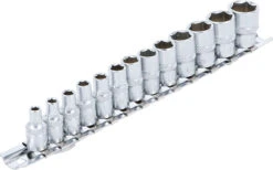 Le jeu de 13 douilles BGS technic à six pans et à entraînement carré intérieur 6,3 mm (1/4″) offre une plage de tailles de SW 4-14 mm, est fabriqué en acier au chrome-vanadium de haute qualité et est livré sur un rail métallique pratique. Parfait pour une utilisation en atelier ou à la maison.