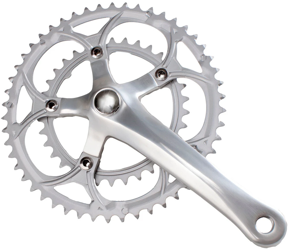 La manivelle Road 2×9 carrés de M-Wave est en aluminium et offre la possibilité de remplacer les plateaux en acier si nécessaire.
