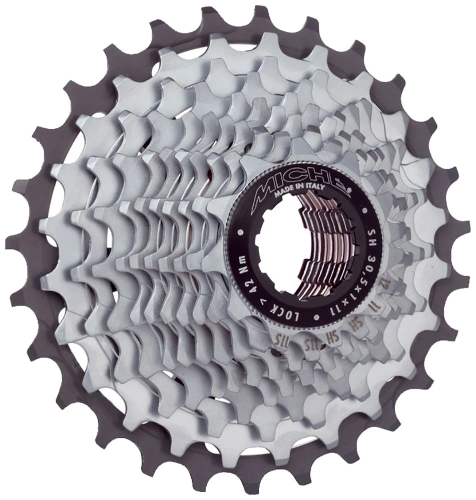 La cassette 11 vitesses de la série Primato Light du fabricant italien Miche est compatible avec une roue libre Campagnolo ainsi qu’avec les systèmes de dérailleurs 11 vitesses de ce marque.