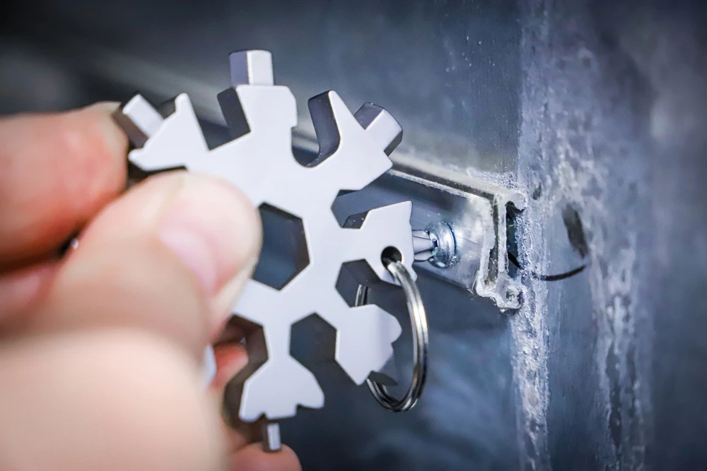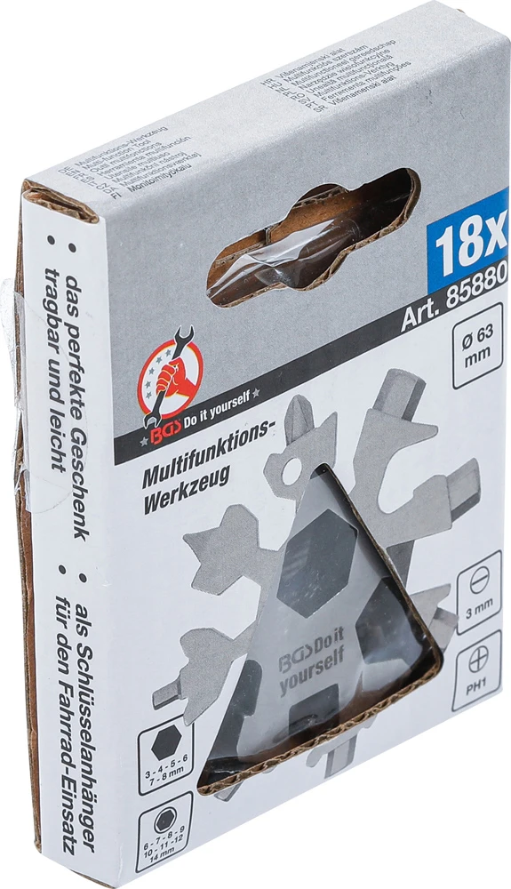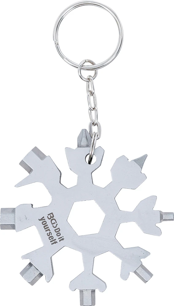 L’outil multifonctionnel en forme de flocon de neige de BGS technic contient 18 fonctions différentes, ce qui en fait un outil indispensable à la maison ou en déplacement. Avec des bords cassés pour une manipulation confortable et un traitement de surface qui garantit la durabilité, il est parfait pour les activités d’intérieur et d’extérieur. L’outil se range rapidement et facilement dans n’importe quelle poche ou sac à dos et constitue également un « cadeau pour homme » unique.