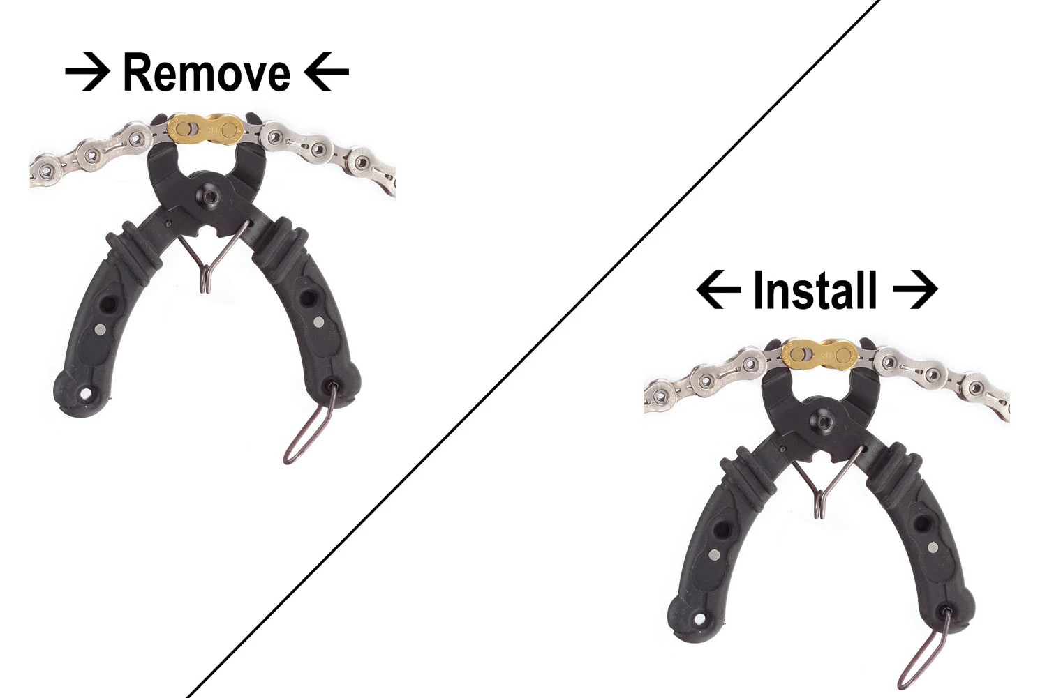 L’antivol de chaîne Master Link est un standard fiable pour fermer la chaîne. Il fonctionne comme un ensemble de maillons extérieurs de la chaîne et relie ainsi deux maillons des extrémités intérieures des maillons de la chaîne. La pince de l’antivol permet d’exercer une force suffisante sur les goupilles de la chaîne pour pouvoir ouvrir ou fermer l’antivol.
