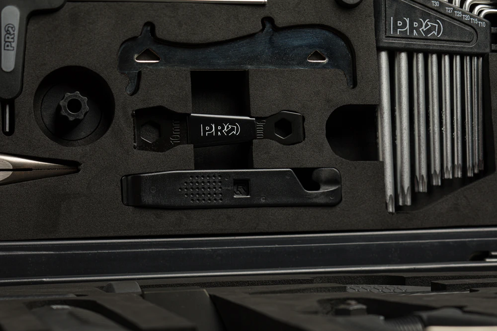 La boîte à outils Expert de PRO contient 42 outils en acier à outils robuste et offre la base d’un service professionnel sur le vélo dans toutes les situations, que ce soit dans le magasin de vélo, sur les courses ou à la maison.