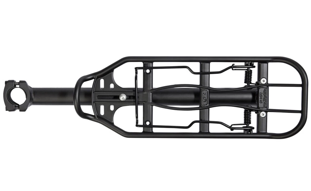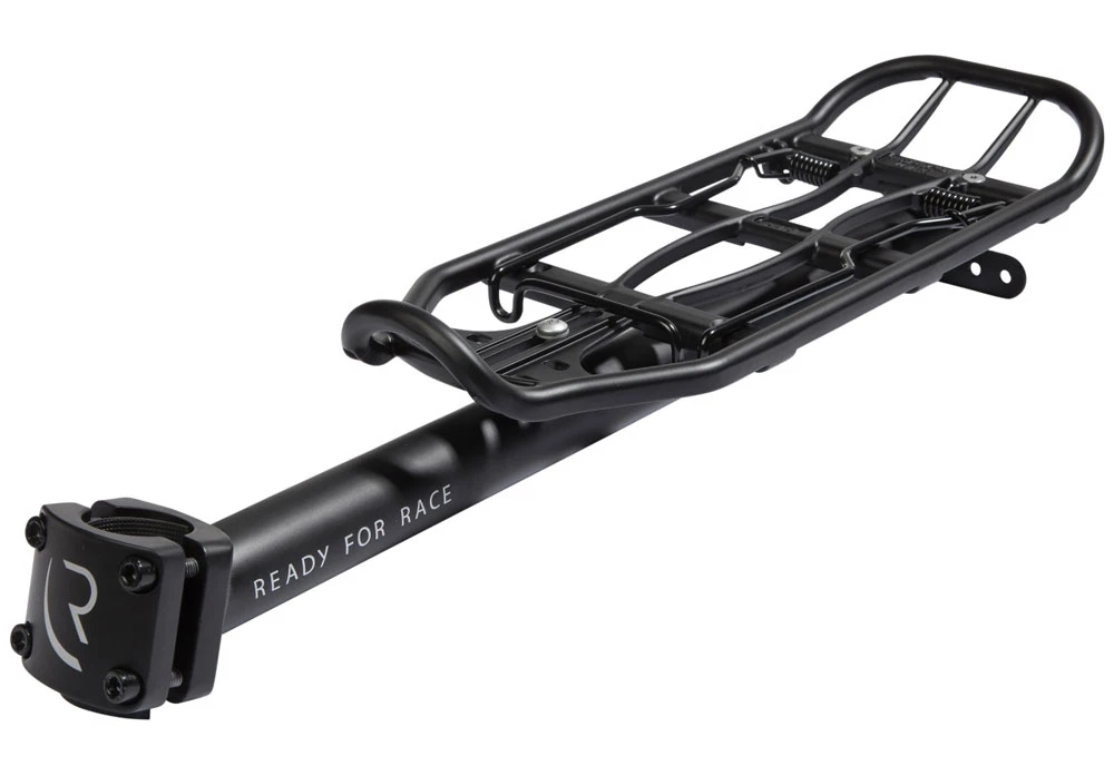 Montage simple et sûr grâce au système à 4 vis, adapté aux tiges de selle de 27,2 à 31,8 mm. Capacité de charge jusqu’à 10 kg. Clapet à ressort attaché plus système intégré RFR Klick & Go.