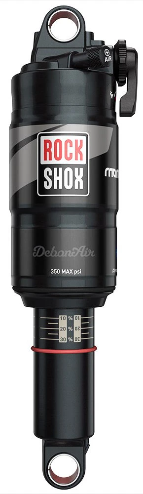 Un ressort pneumatique léger, hautement réglable, conçu pour offrir une sensation de bobine constante tout au long de la course – absorbant sans effort les plus petits coups et suivant les plus légers changements du terrain.