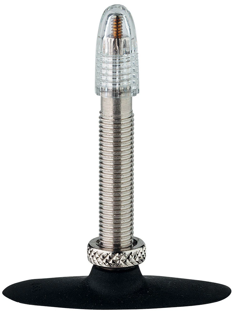 Il existe trois types de tubes qui sont devenus des standards du marché et il est difficile de faire une recommandation particulière. L’aspect le plus important est que la valve s’adapte au trou de valve de la jante et qu’une pompe appropriée soit disponible. Contrairement à la croyance populaire, les grandes différences de rétention d’air font désormais partie du passé. Dans tous les cas, toutes les valves Schwalbe offrent d’excellentes performances et sont adaptées à une utilisation à haute pression. La valve classique de vélo ou valve Dunlop reste la plus répandue dans le monde. La plupart des cyclistes la connaissent. Le noyau de la valve peut être facilement remplacé et l’air peut être libéré très rapidement. Le montage d’une chambre à air équipée d’une valve Dunlop est plus délicat, car il faut retirer le noyau de la valve et le contre-écrou afin de faire passer la valve dans le trou de la valve. Le gonflage n’est possible que lorsque le noyau et l’écrou sont remis en place. Avec les valves Dunlop traditionnelles, il est impossible de vérifier la pression de gonflage. Cependant, la valve spéciale Schwalbe Dunlop permet un retour d’air, de sorte qu’il est maintenant possible de vérifier la pression de gonflage avec un manomètre Airmax. Auparavant, il était difficile de gonfler un tube avec une valve Dunlop, mais avec les noyaux de valve modernes d’aujourd’hui, ce n’est plus le cas. La valve Sclaverand est plus étroite que les autres valves (6 au lieu de 8 mm). Elle nécessite un trou de jante plus petit et est donc particulièrement bien adaptée aux jantes étroites des vélos de course. Elle est également plus légère d’environ 4-5 g qu’une valve de voiture ou une valve Dunlop. Elle peut être verrouillée manuellement avec l’écrou moleté. Avant de gonfler, il faut desserrer l’écrou moleté. Les premiers utilisateurs rencontrent souvent des problèmes. De plus, la fine tige supérieure peut être facilement pliée lors de la fixation et du retrait du connecteur de la pompe. Attention : Sachez que l’utilisation de tubes à valve Sclaverand sur des jantes avec des trous de valve plus grands entraîne souvent un arrachement de la valve lorsque les bords métalliques tranchants autour du trou de valve coupent la tige de valve du tube. La valve Auto/Car peut être gonflée très facilement dans une station-service et ne pose aucun problème. Les anciennes pompes à vélo, ainsi que les simples pompes à vélo, ne sont pas compatibles avec les valves auto.