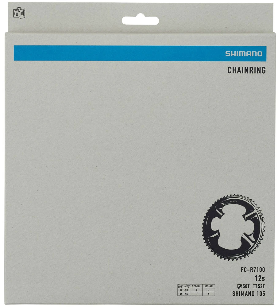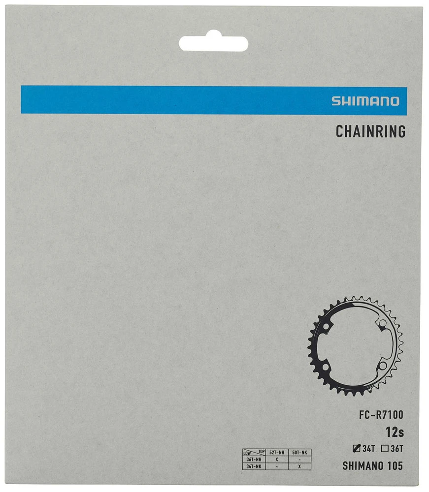Plateau de pédalier de rechange Shimano pour la garniture de manivelle 105 FC-R7100 12 vitesses (NK) avec 50/34 dents.