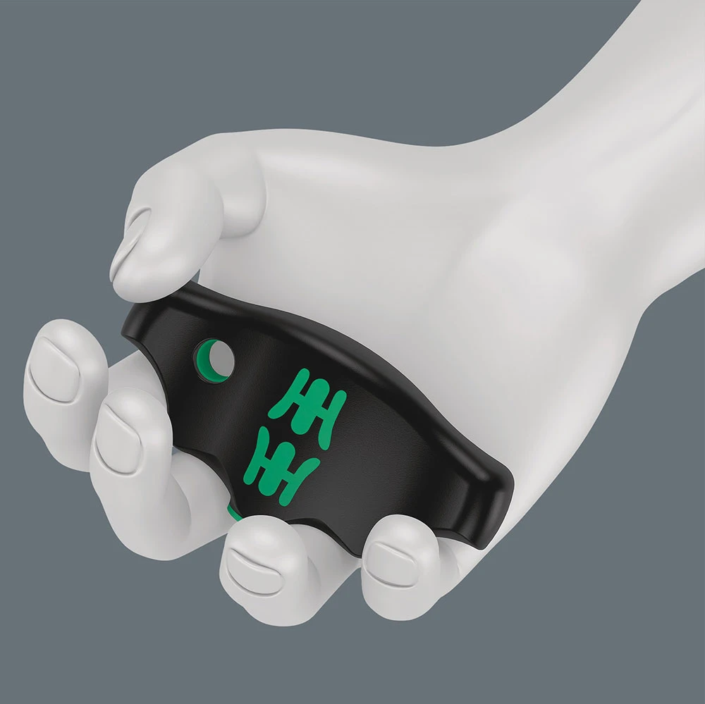La forme ergonomique du manche en T épouse bien la forme de la paume. Les doigts se positionnent sur les formes légèrement arrondies. La main entière est en contact avec le manche et les déperditions par friction entre la main et le manche sont évitées.