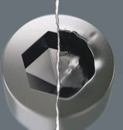 À l’aide d’un laser extrêmement concentré, on génère une structure superficielle acérée. La dureté des stries réalisés par ce procédé atteint jusqu’à 1000 HV 0,3. Wera Lasertip s’agrippe dans la tête de vis et empêche le dérapage hors de celle-ci. Pour vis à fente, Phillips et Pozidriv.